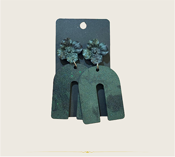 Pendientes hechos a mano con resina y mica de las Sierras de Córdoba. Piezas livianas, cómodas y resistentes.