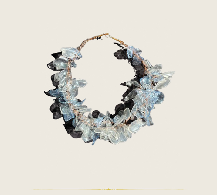 Detalles en cuentas de vidrio, cristales o perlas de río, según el diseño.